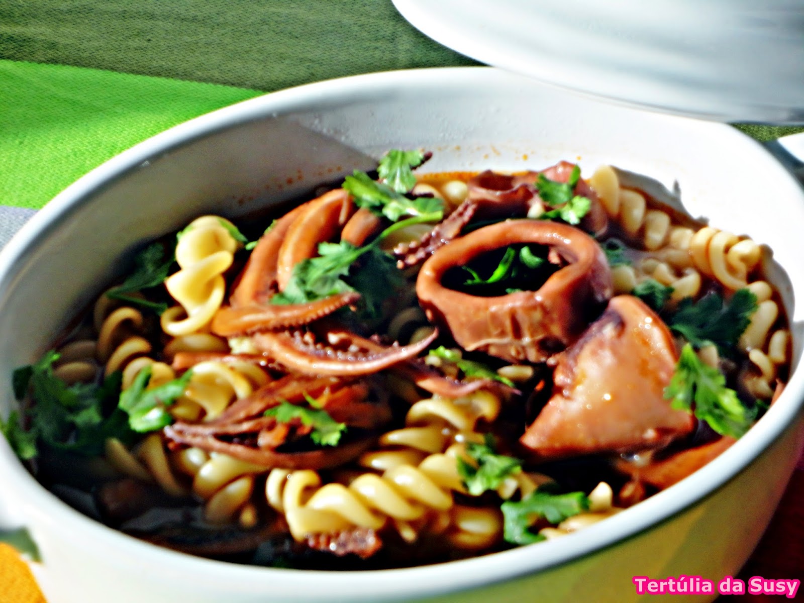 Em casa da minha mãe é tradicional comer as potas com arroz mas, eu como sou fã de massas, decidi contrariar o tradicional.