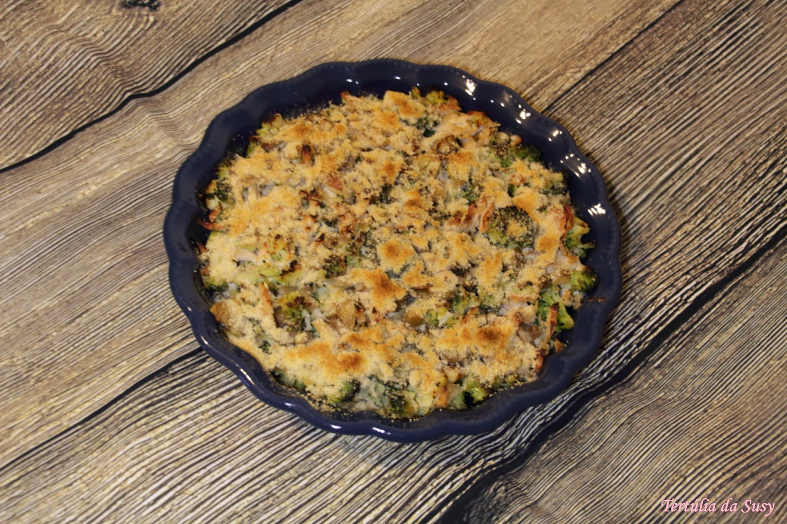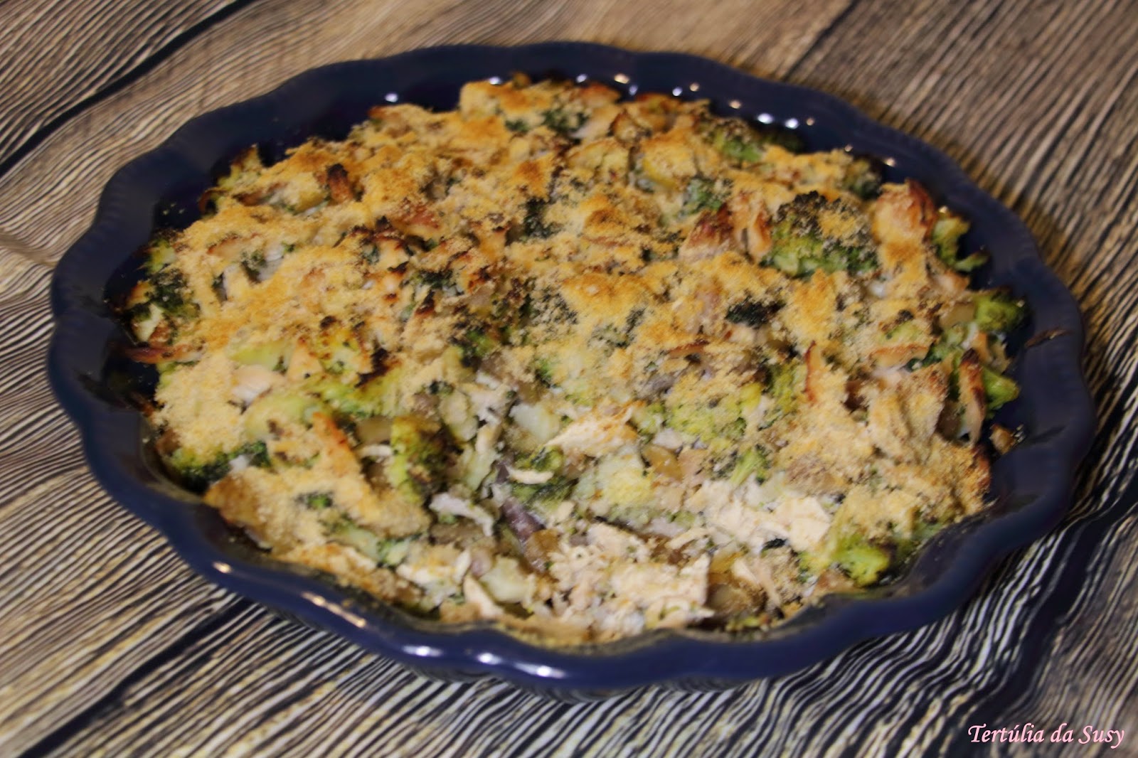 Gratinado de frango com brócolos e castanhas