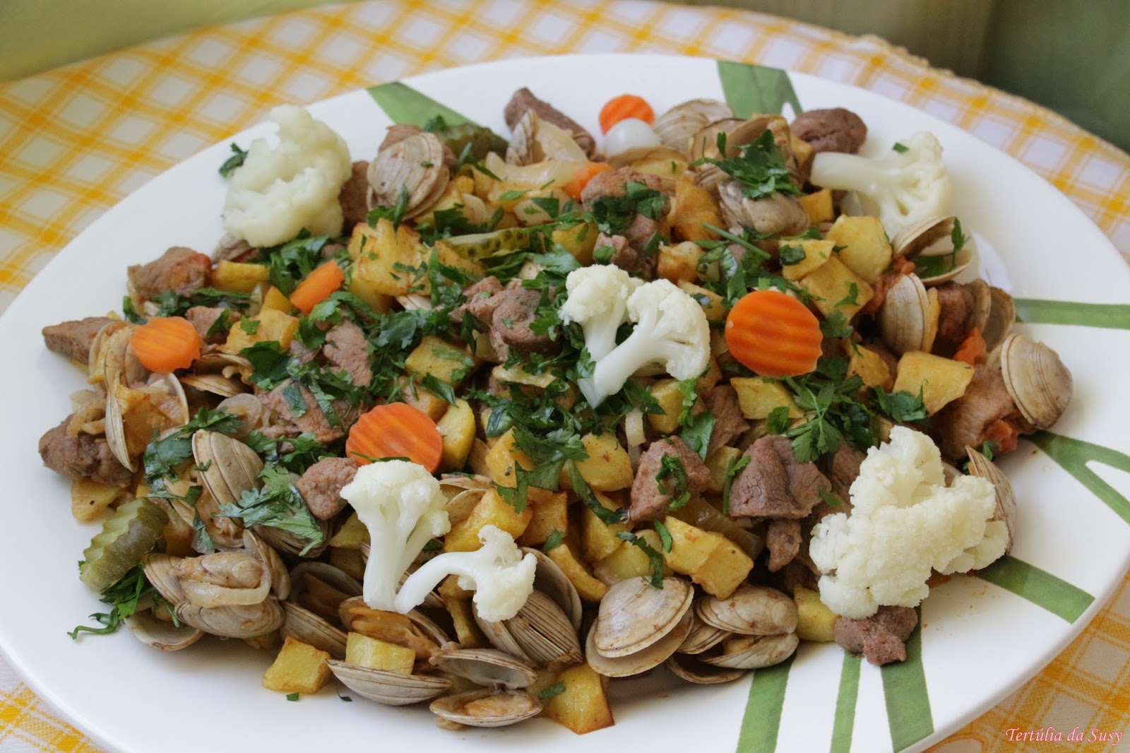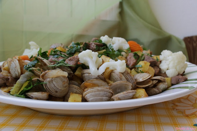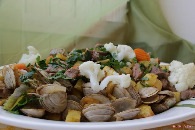 Junte depois as amêijoas, previamente lavadas em várias águas.