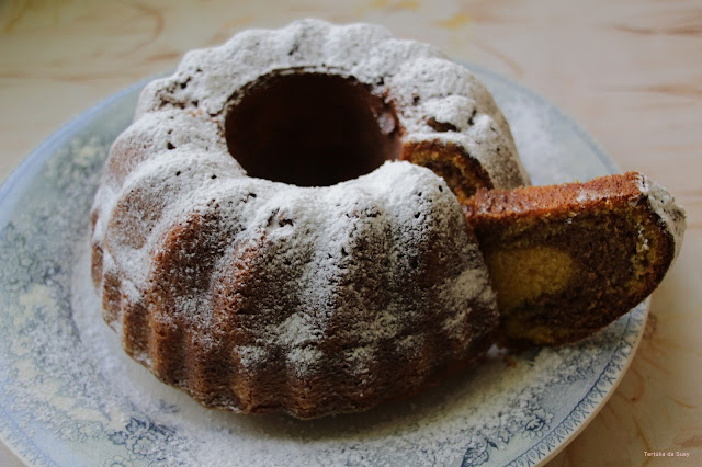 Um bolo muito fácil de fazer e que fica com um sabor delicioso. Fica muito bonito, pelo contraste das cores!