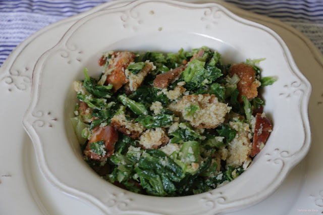 Comece por retirar a pele aos enchidos e cortar às rodelas. Coloque os enchidos num tacho e deixe libertar o suco. Adicione o frango (ou outras carnes de sobra) desfiado e deixe ganhar gosto. Descasque a cebola e os dentes de alho e pique-os finamente. Retire os enchidos e o frango do tacho e adicione a cebola picada, os dentes de alho picados e o talo de aipo picado finamente. Deixe refogar e adicione o arroz. Vá adicionando o caldo de legumes (previamente cozinhado com as cascas dos legumes que tenha usado noutros preparados), até o arroz estar quase todo cozinhado.