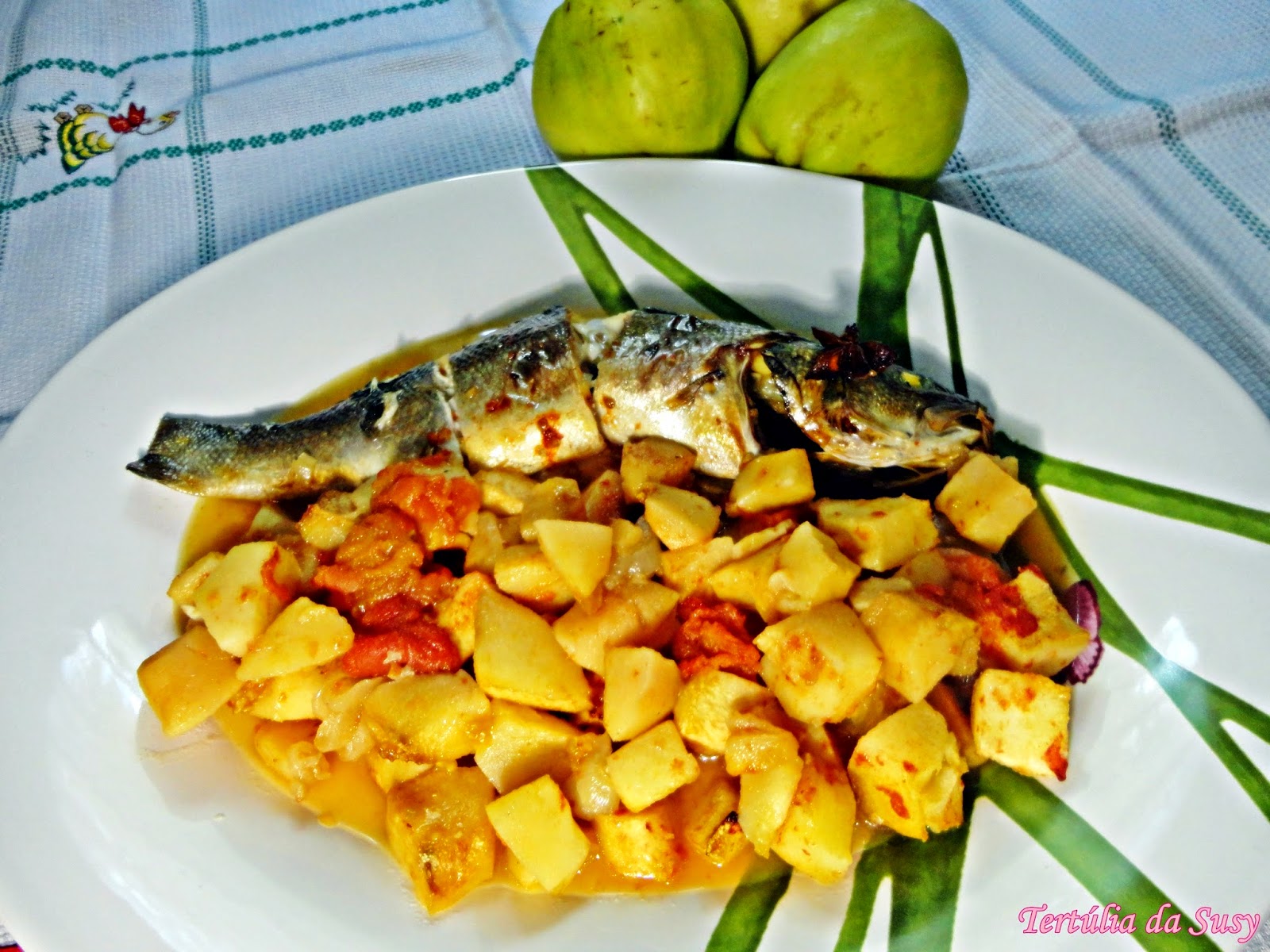 Pese os marmelos e por cada 1.5kg, junte 800g de açúcar de coco e 1dl de água.