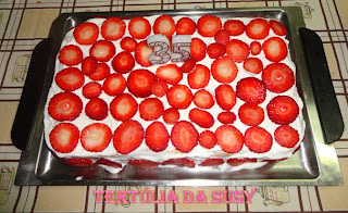 Eu fiz o bolo mas, a minha mãe completou-o, ou seja, fez o recheio e a cobertura e a montagem do bolo. Obrigada mãe pelo lindo e delicioso bolo de aniversário.