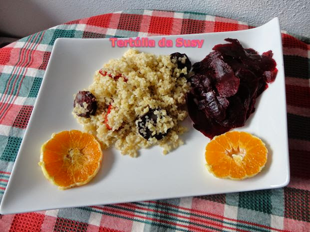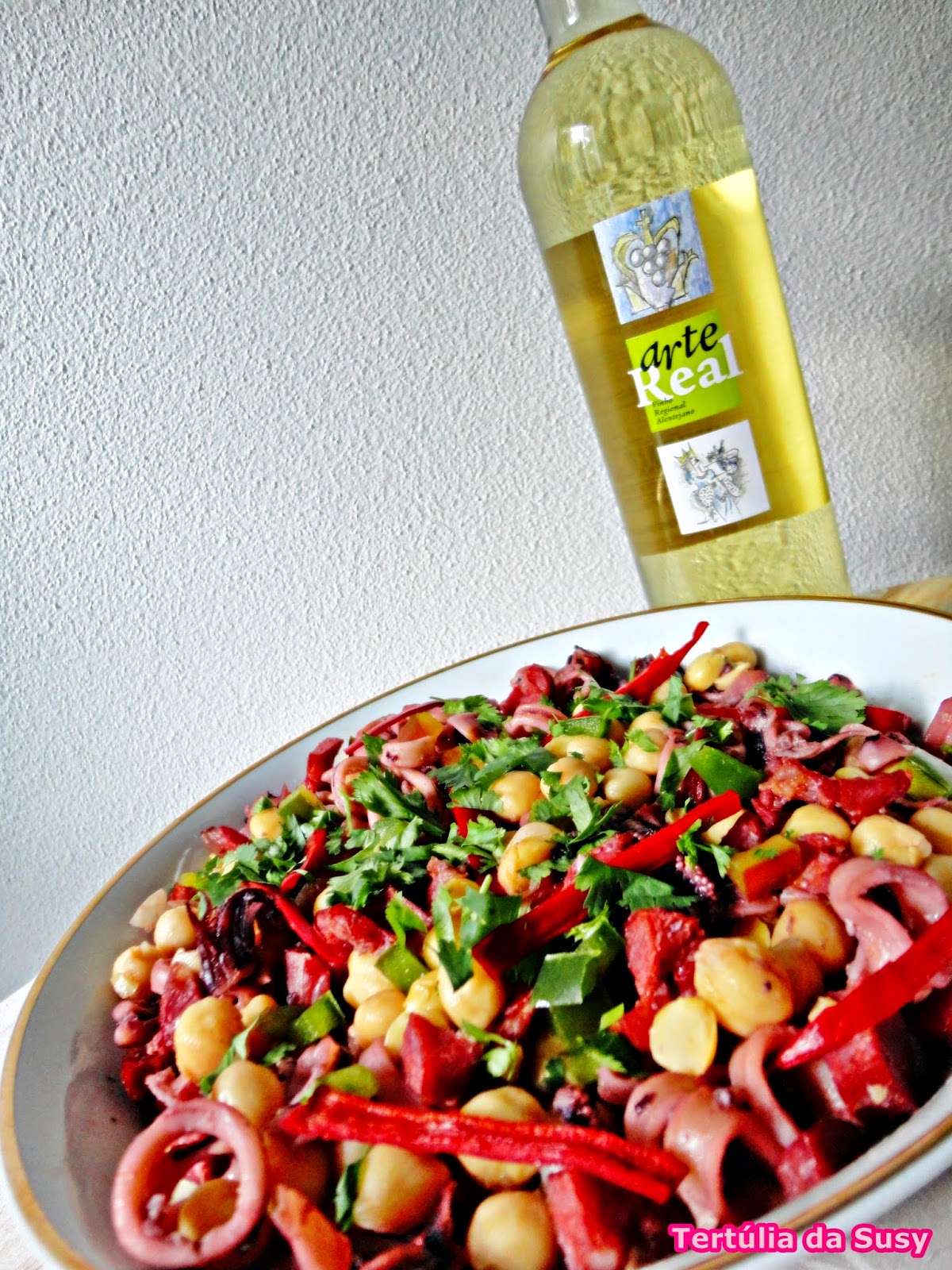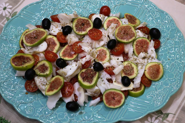 Ao jantar gosto muito de acompanhar a carne ou o peixe com saladas. Que me dizem desta, é bem colorida, não é?